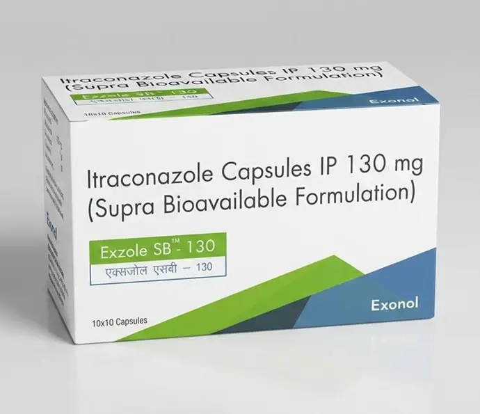 Advanced Antifungal Therapy with Enhanced Bioavailability: Exzole-SB 130mg is a super bio-available formulation of Itraconazole, developed to deliver superior absorption, improved efficacy, and consistent therapeutic outcomes in a wide range of fungal infections.